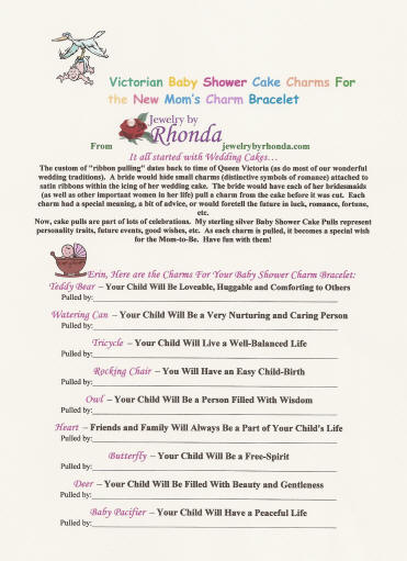 The mom-to-be also gets a personalized card with the charm meanings for