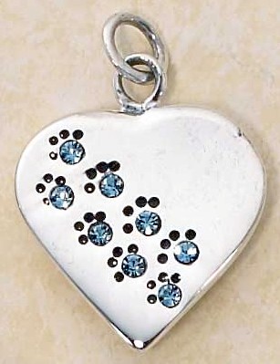 heart pendant with stamped paw prints going across full of