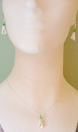 Sterling Silver Lampwork Glass Calla Lily and Earrings |