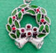 Green and red enamel, red glass accents just above bells, approx. 7/8" x