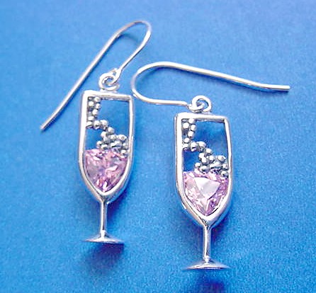 silver Champagne earrings. The champagne flute