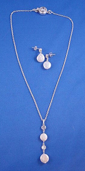 Coin Pearl Drop Necklace, Bracelet and Earrings 3-piece