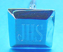 Sterling silver square bevel-edge cuff Links shown with 3 initials in a