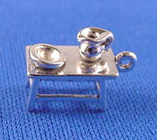 3-D table with wash basin and pitcher, approx. 5/8" x 7/16" x 1/4" |