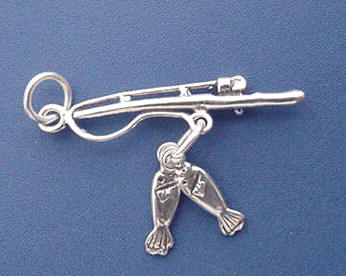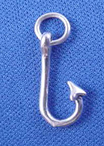 3-D fishing pole with 2 dangling fish, approx. 15/16" x 13/16" |