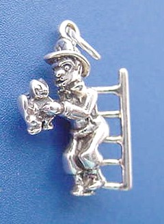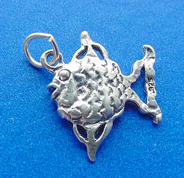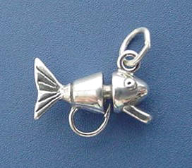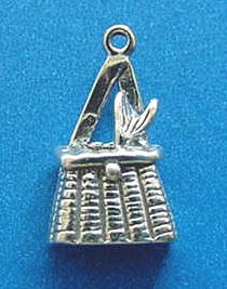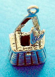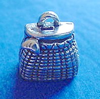 3-D basket w/fish tail coming out of the top, approx. 7/8" x 1/2" |