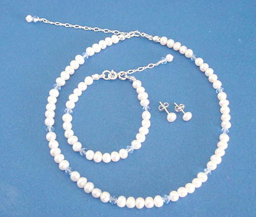 3-piece flowergirl jewelry set with freshwater pearls and