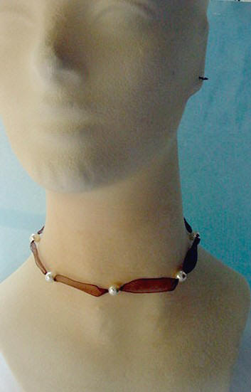 To order item#: RYSONeck, 36" Organza and Pearl Necklace for