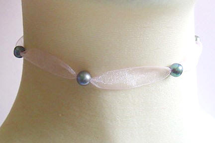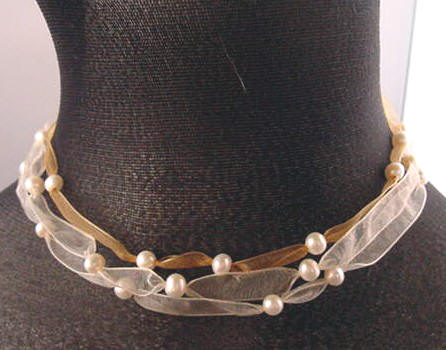 organza and pearl 36" necklace (tied in a bow) |