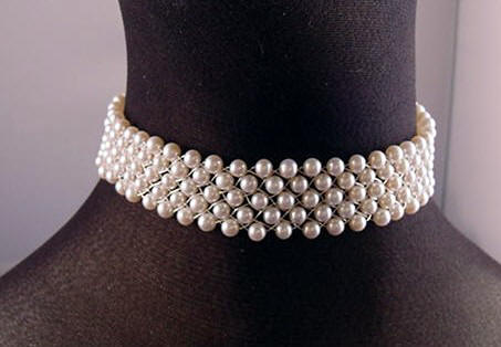 Pictured here is a special request set - the white pearl choker is made