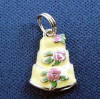 approx. 5/8" x 7/16", yellow enamel cake, pink roses w/green leaves,