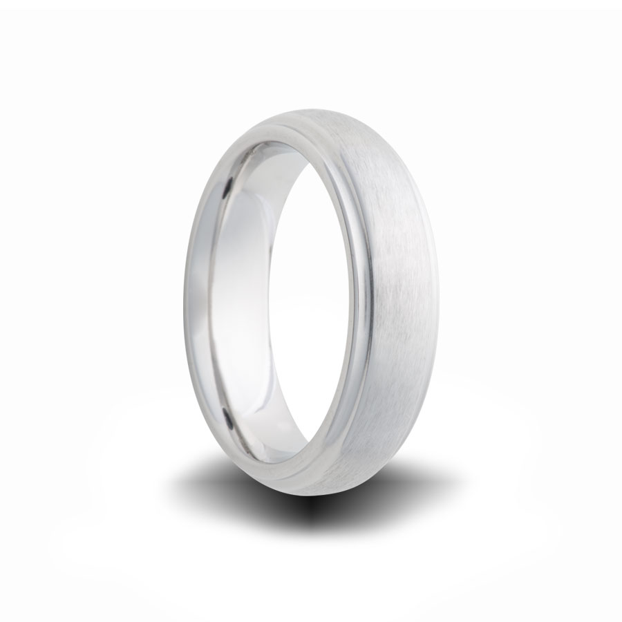 | Domed Cobalt Chrome Wedding Band With Step Edged in Satin Finish |