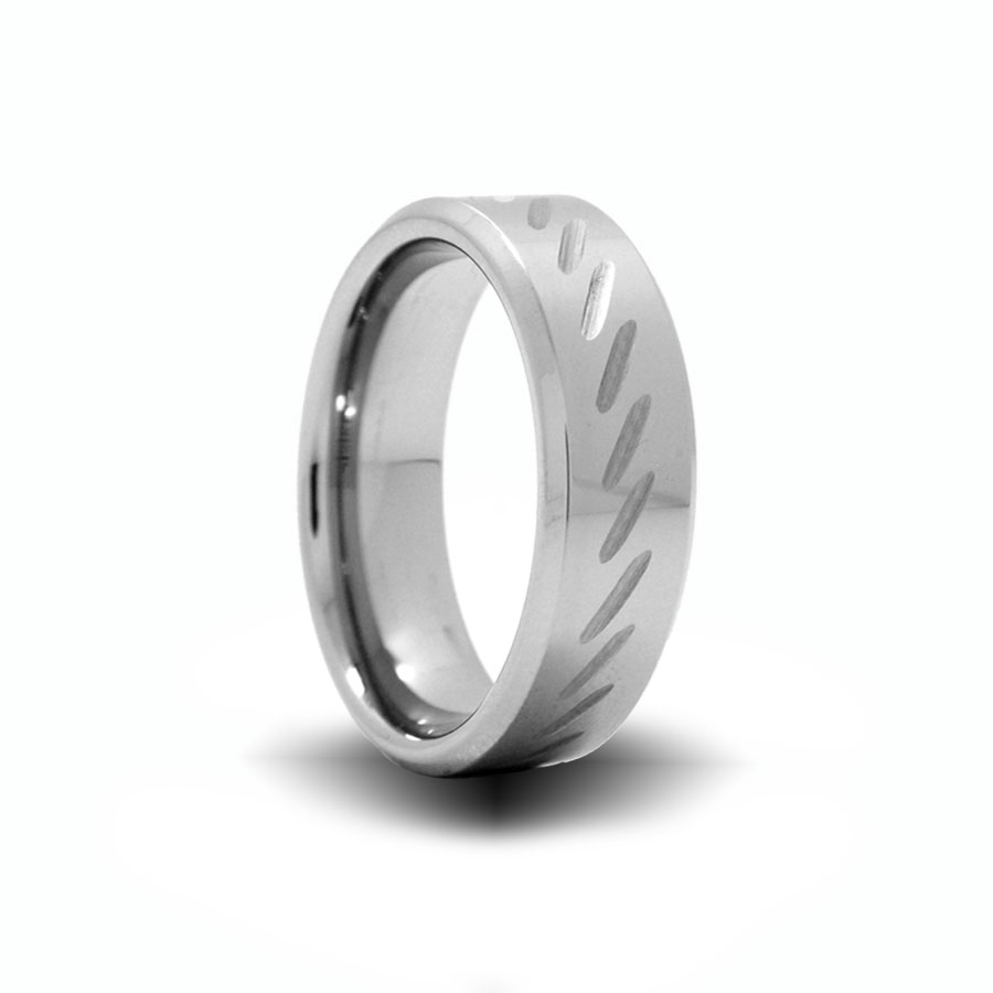 Tungsten Carbide Flat Wedding Band With Slashes and Bevel Edges |