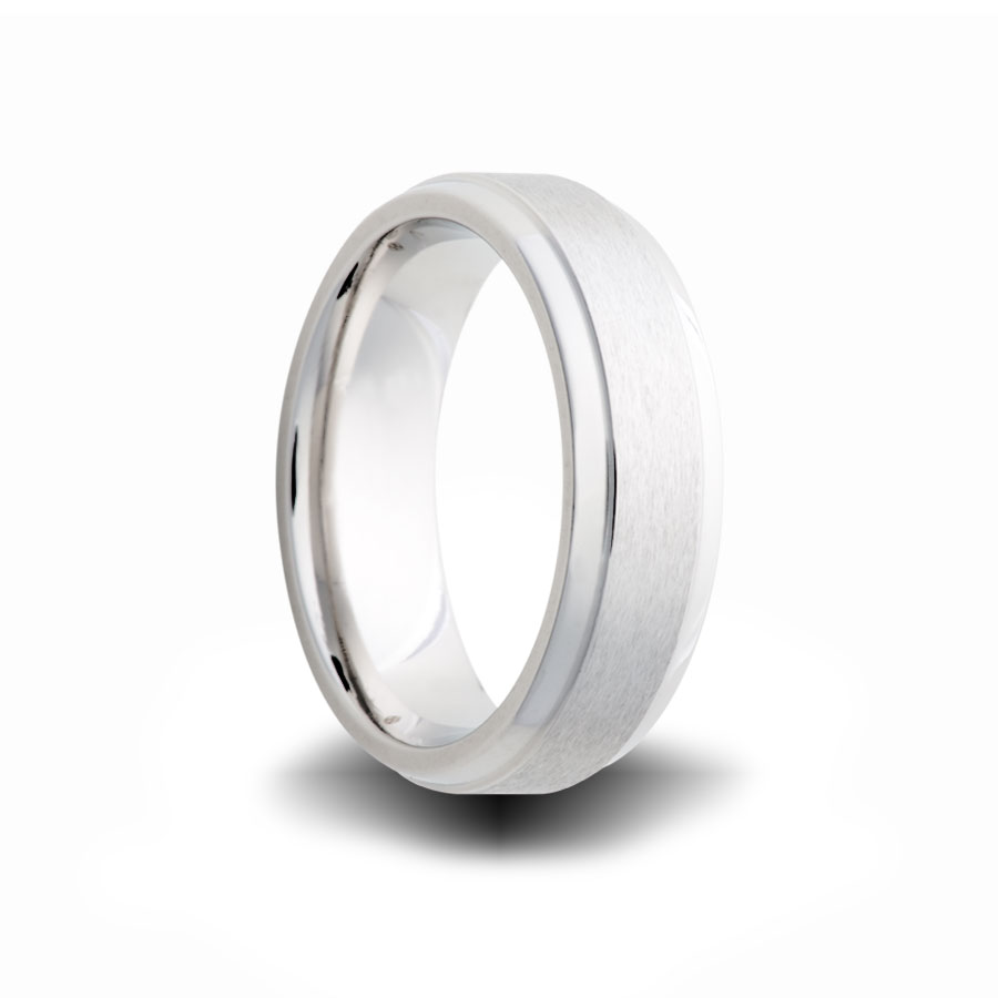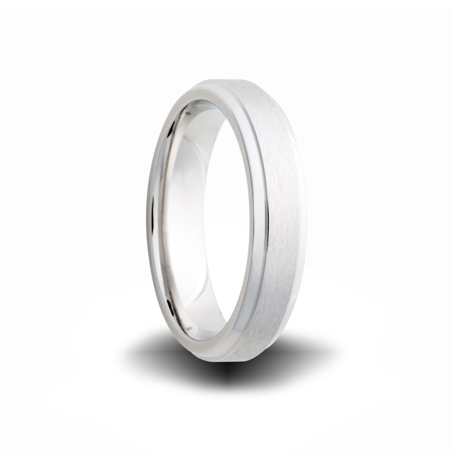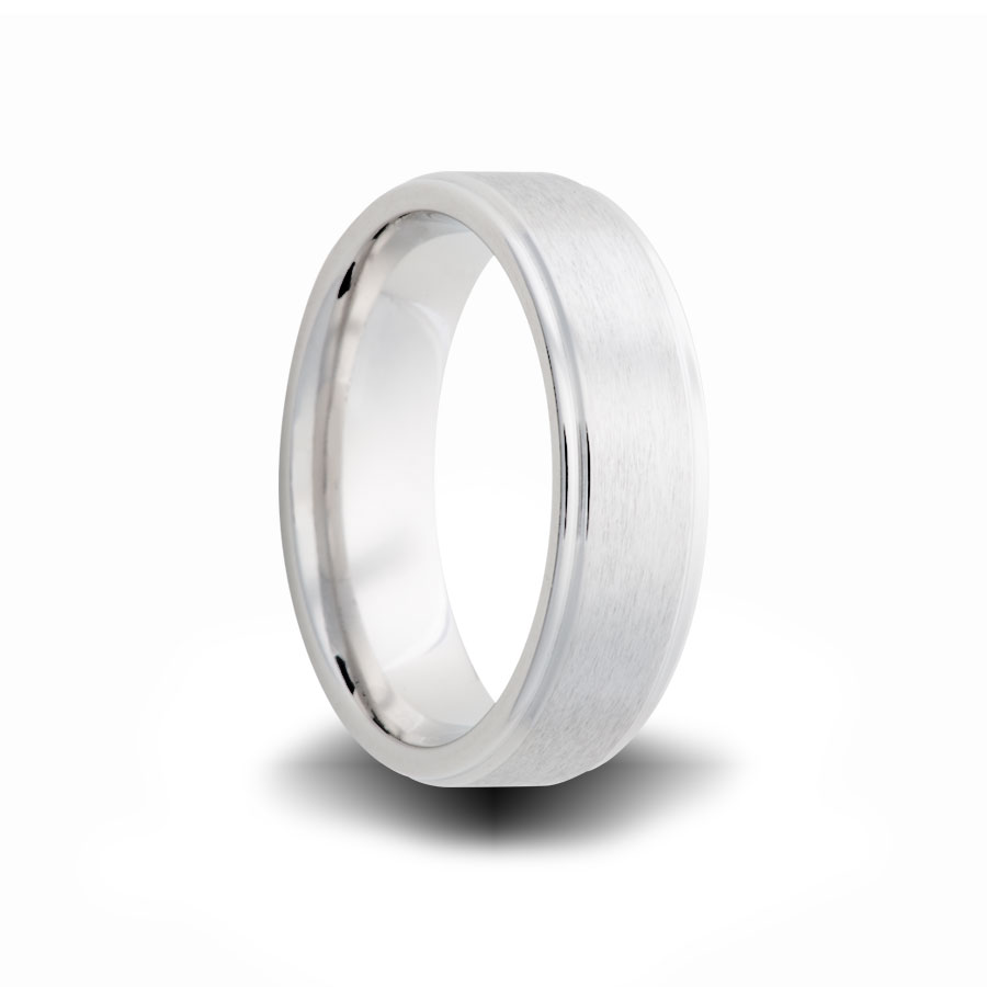 Flat Cobalt Chrome Wedding Ring With Step Edges in Satin Finish |