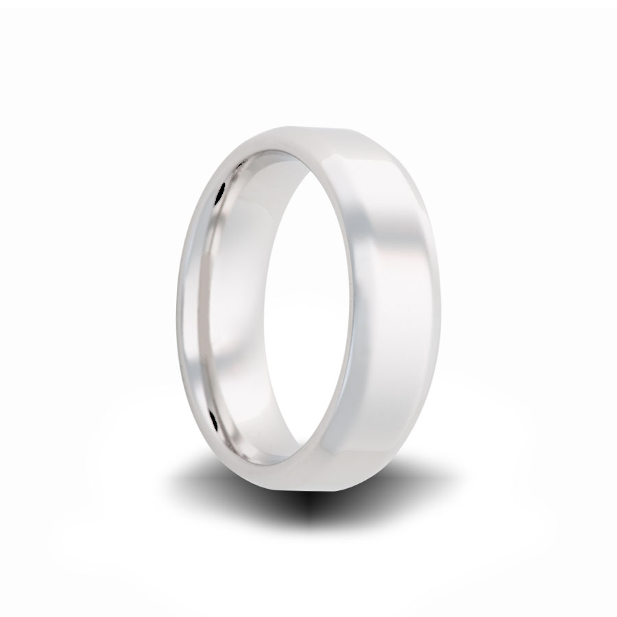 Flat Cobalt Chrome Wedding Ring With Bevel Edges in Polish Finish |