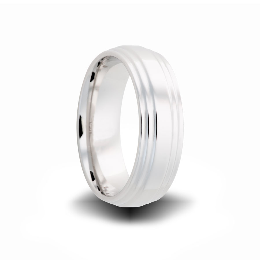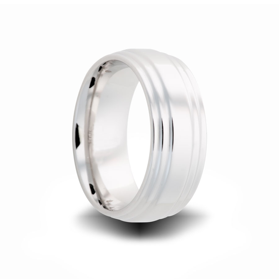 Cobalt Chrome Wedding Band in Polish Finish With Deep Outside Grooves |