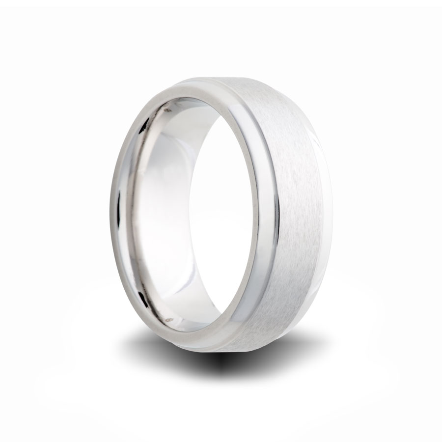 | Cobalt Chrome Wedding Band With Double Step Edges in Satin Finish |