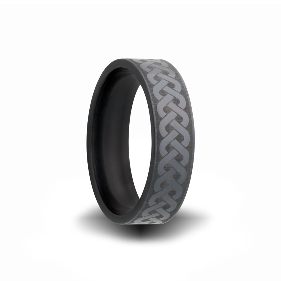 Flat Black Zirconium Wedding Ring in 4 Laser Engraved Pattern Choices |