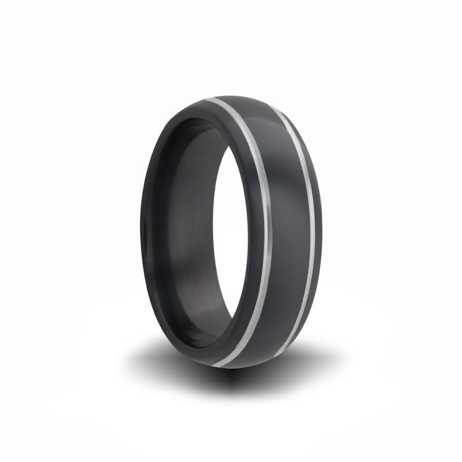 | Domed Two Tone Black Zirconium Wedding Band With Two Outside Grooves |