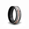 | 8mm wide Flat Black Zirconium Wedding Ring With Precious Metal Inlay Stripes (center 2mm wide inlay with two 1mm inlay side stripes) in 3 Choices... |