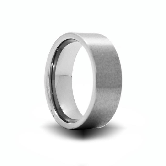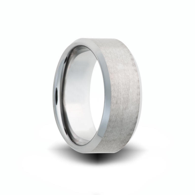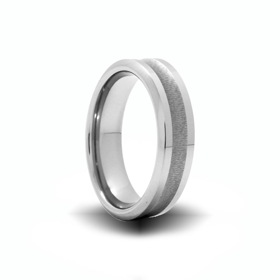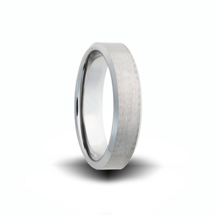 | Flat Tungsten Carbide Wedding Ring with Double Bevel Edges in Satin Finish |