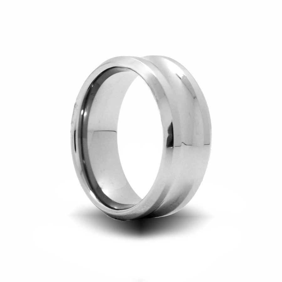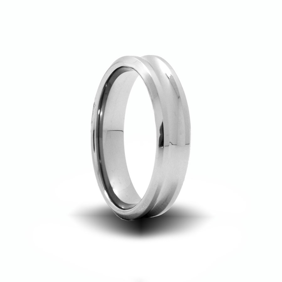 Tungsten Carbide Wedding Ring with Polished Concave Center and Bevel Edges |