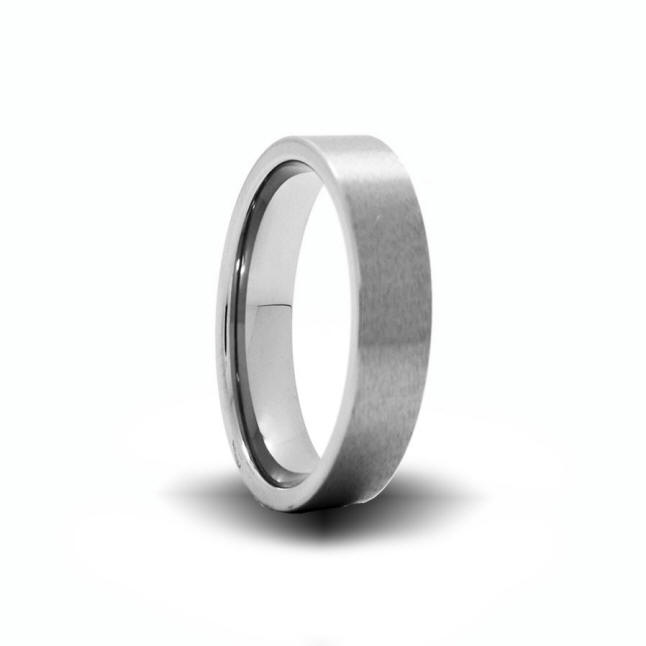 Flat Tungsten Carbide Wedding Ring with Double Bevel Edges in Satin Finish |