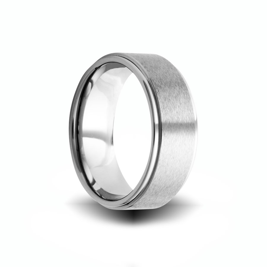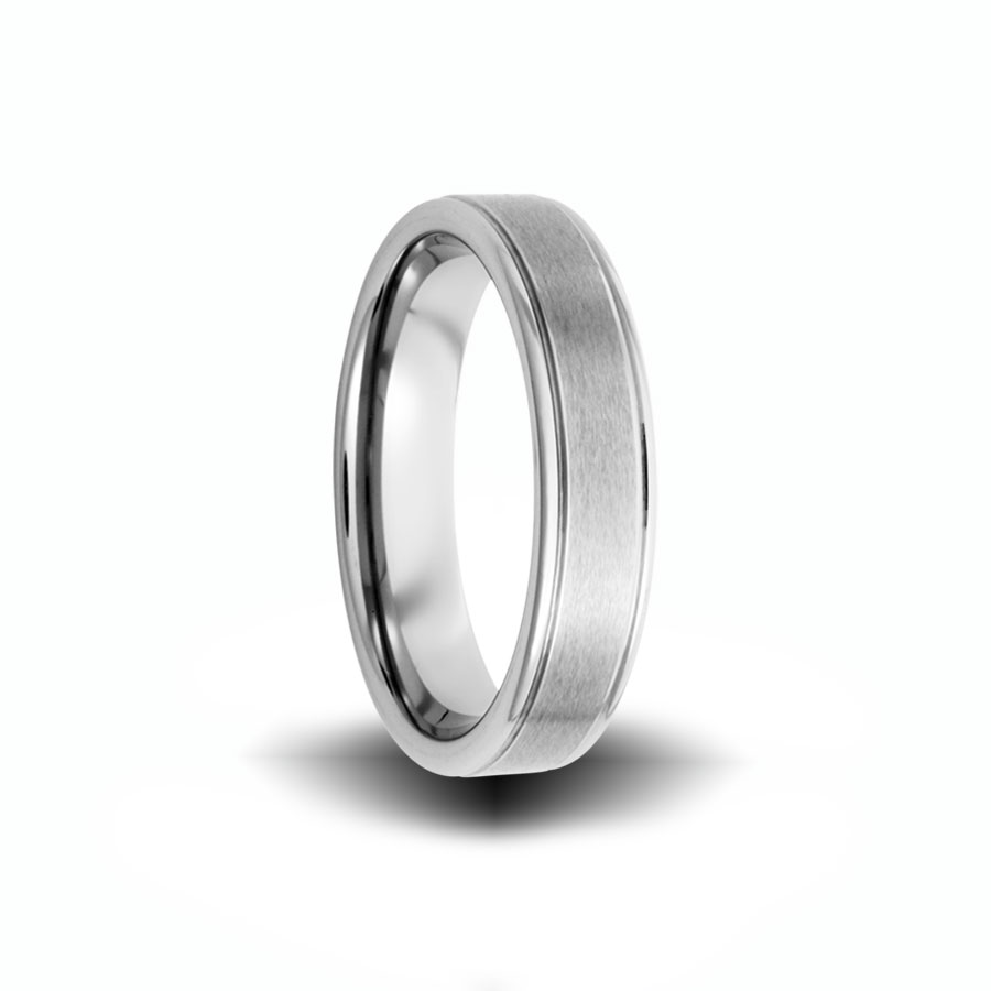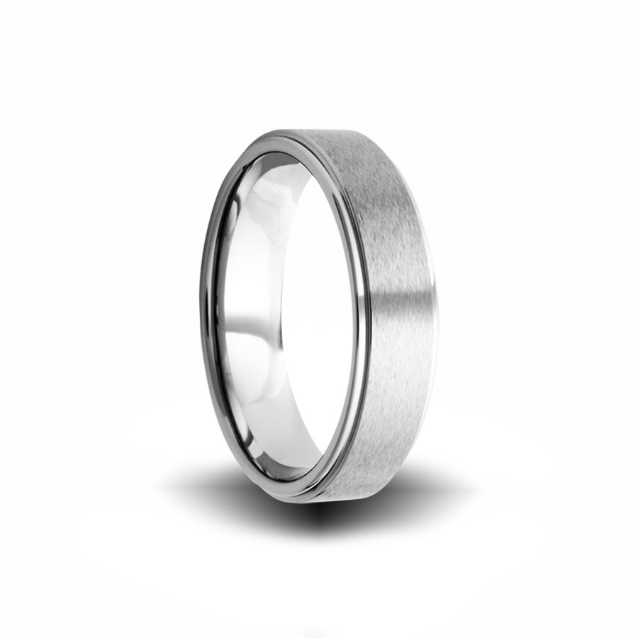 Flat with Step Edge Tungsten Carbide Wedding Band with Satin Finish |