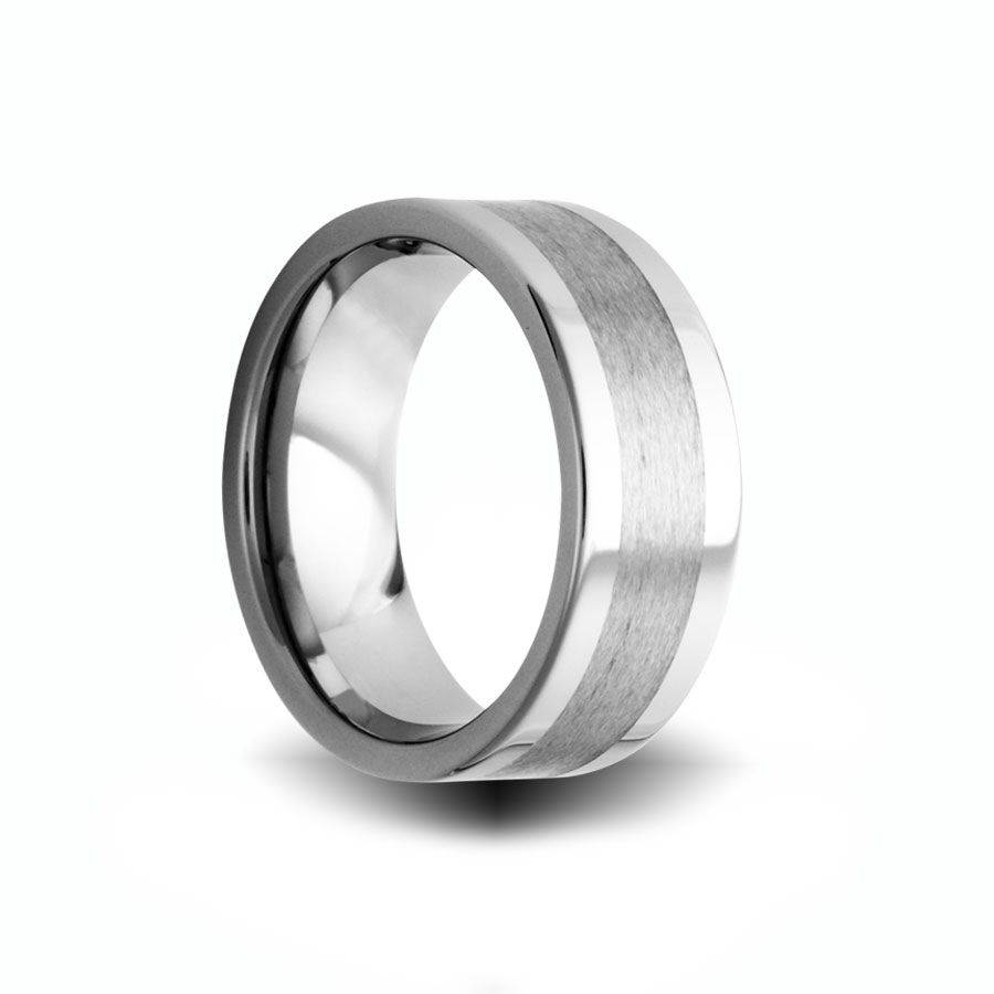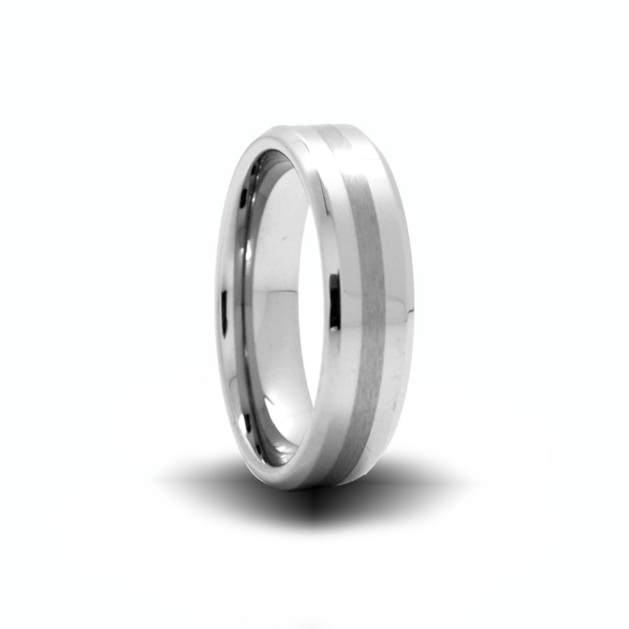 Flat Tungsten Carbide Polished Finish Wedding Band with Center Satin Finish Stripe |