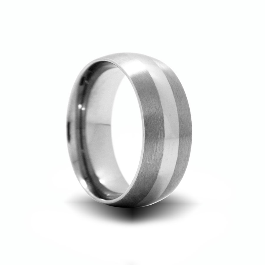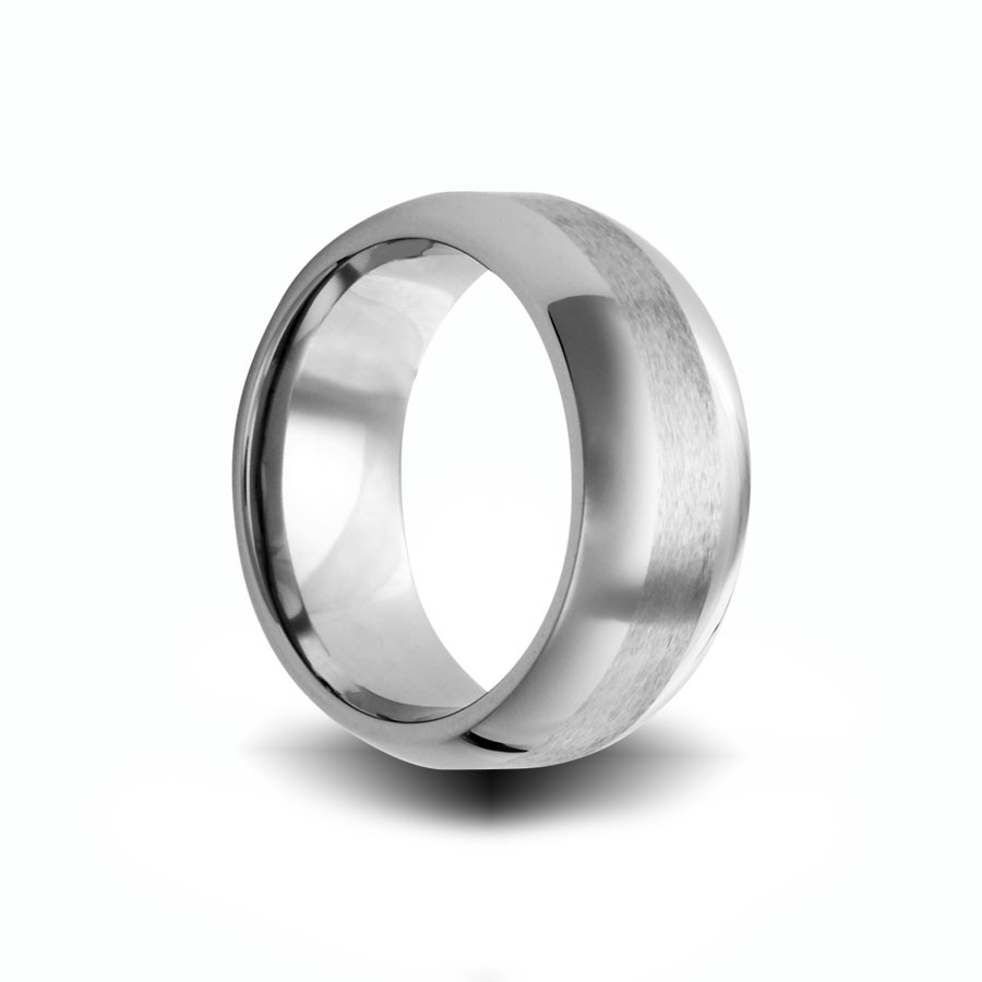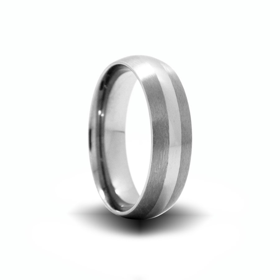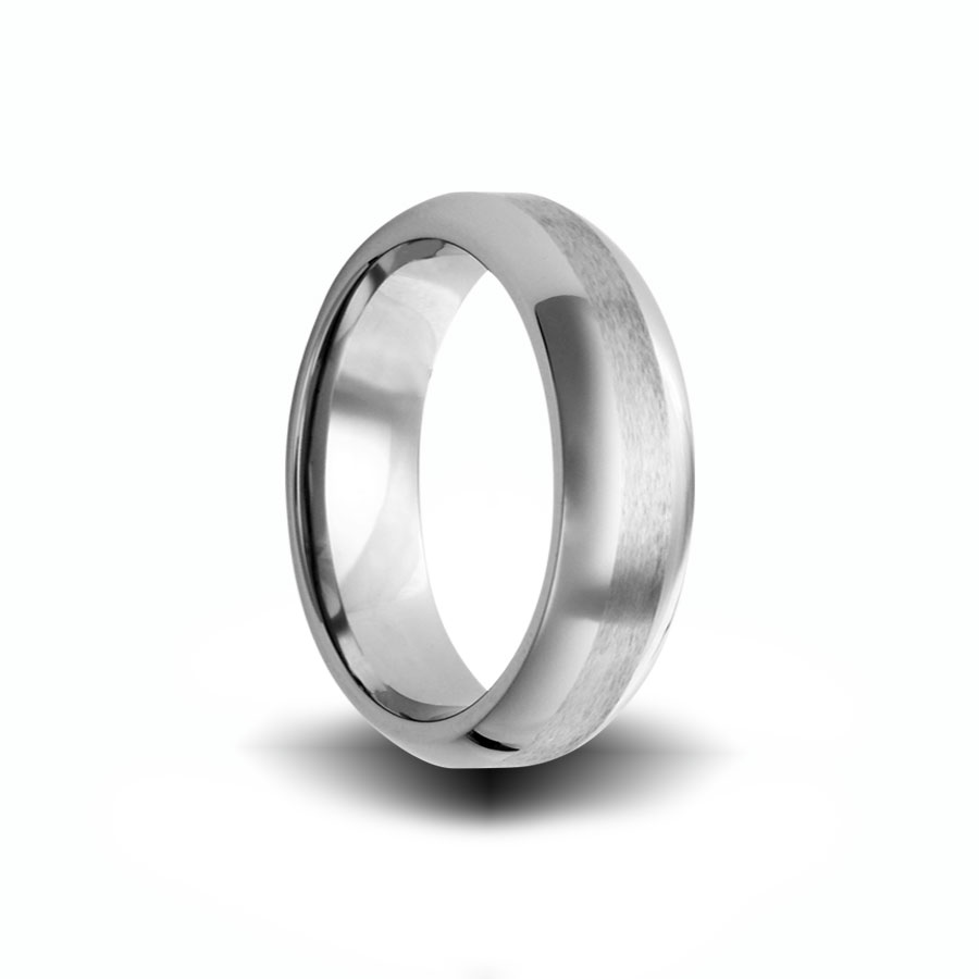 Domed Tungsten Carbide Wedding Band with Satin Stripe in the Center and Polish Finished Edges |