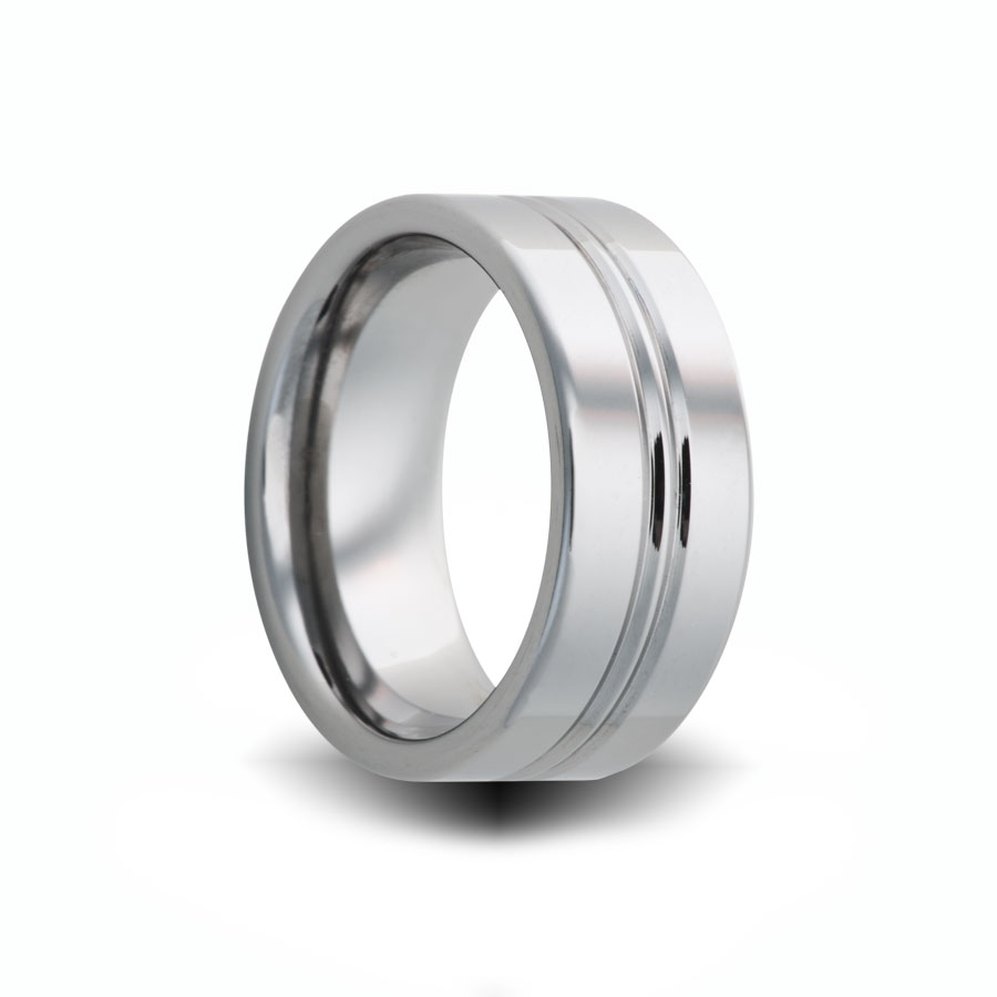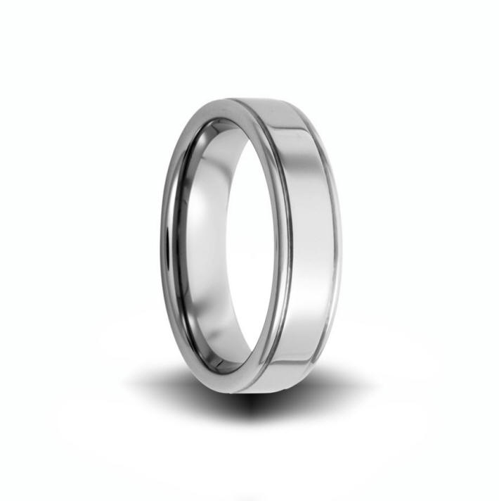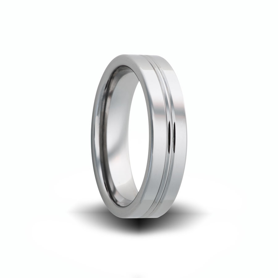 | Flat Tungsten Carbide Wedding Ring with Two Center Grooves |