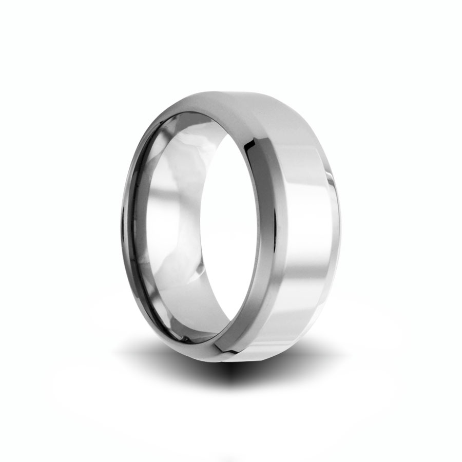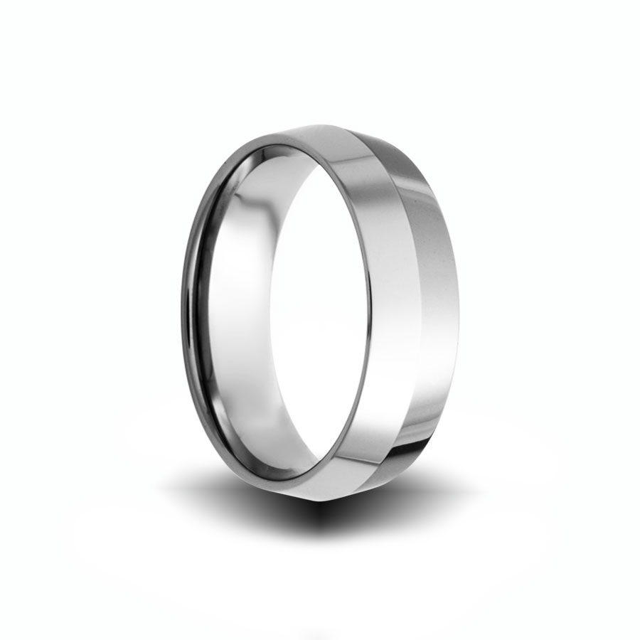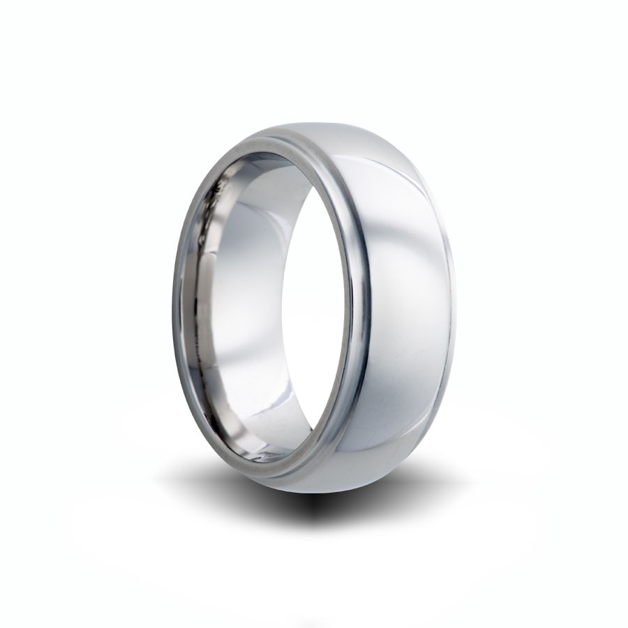 | Domed Tungsten Carbide Wedding Band with Step Edge in Polished Finish |