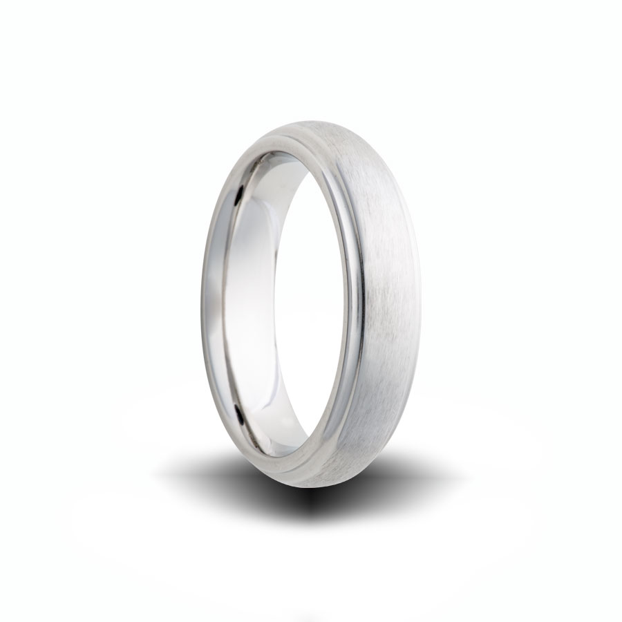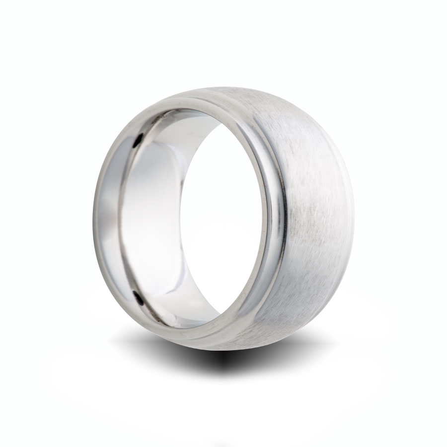 Domed Tungsten Carbide Wedding Band with Step Edge in Satin Finish |