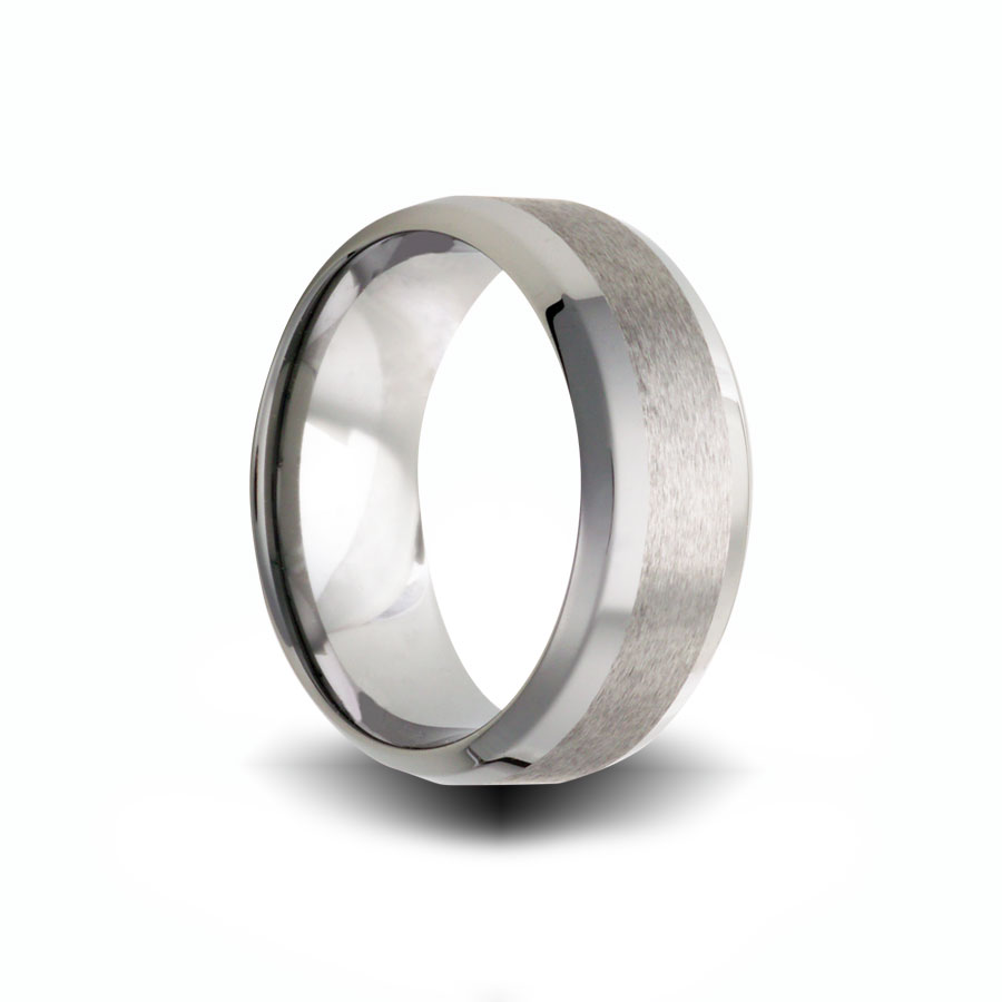 Domed Tungsten Carbide Polished Finish Wedding Band with Center Satin Stripe and Bevel Edges |