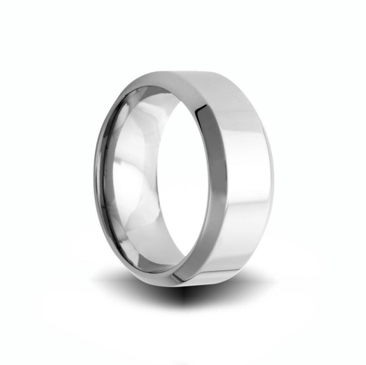 | Flat with Bevel Edge Tungsten Carbide Wedding Ring with Polished Finish |