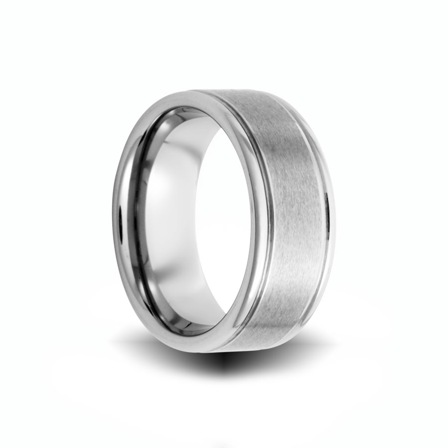 Flat Tungsten Carbide Wedding Ring with Deep Outside Grooves and Satin Finish |