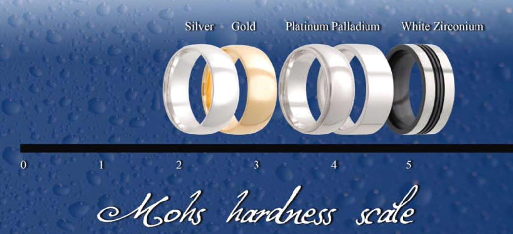 Check this out...hardness of each wedding band metal according to the Mohs hardness scale:  |